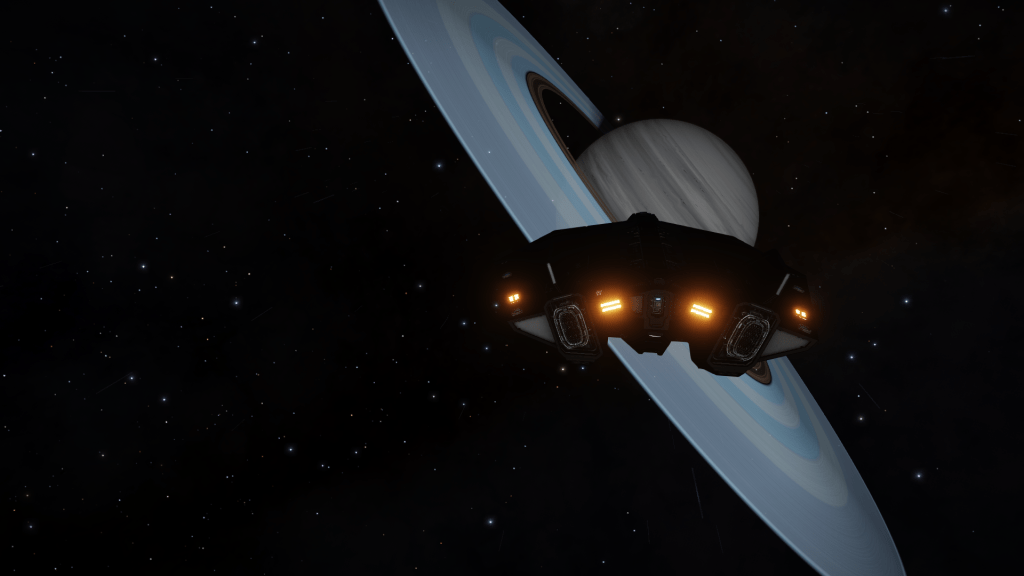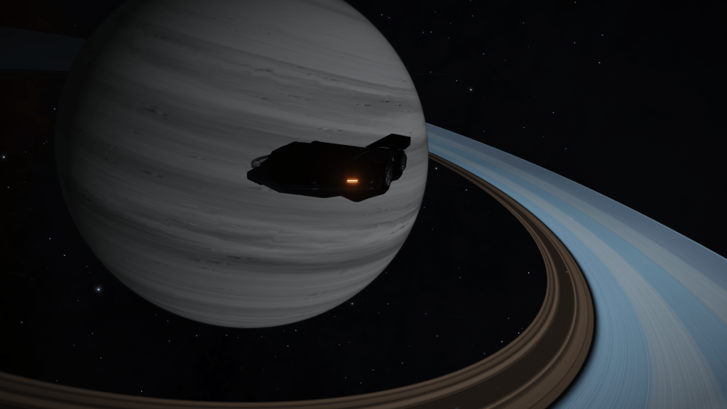 Set off for the Shapley Nebula, some 28 odd jumps away… Found some nice Gas Giants with ring systems…