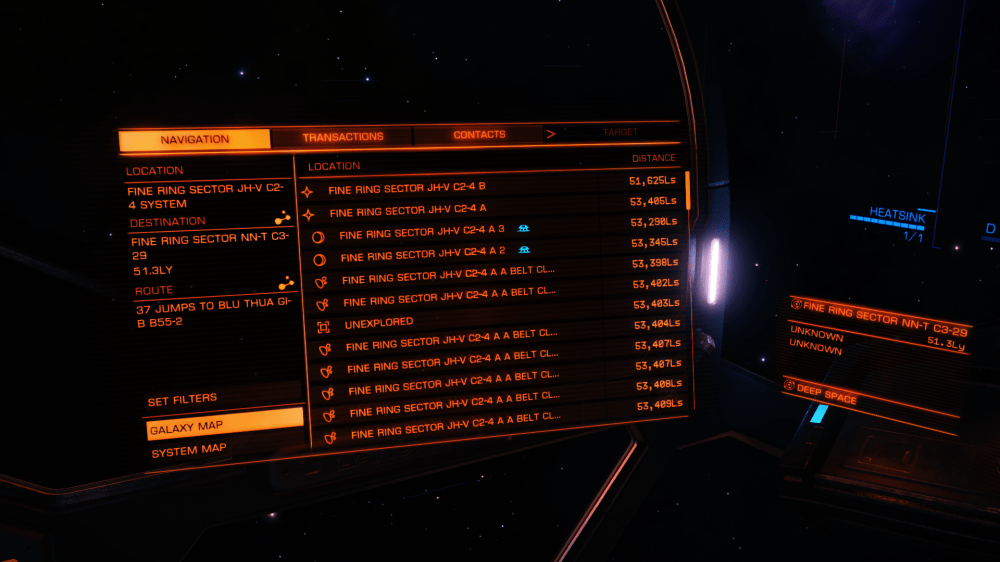 A visit to Fine Ring Sector JH-V C2-4 to check out the Shapley Nebula then 37 Jumps to BLU THUA G1-B B55-2 and Cycladia the Earth type planet with ring system for some stunning views…