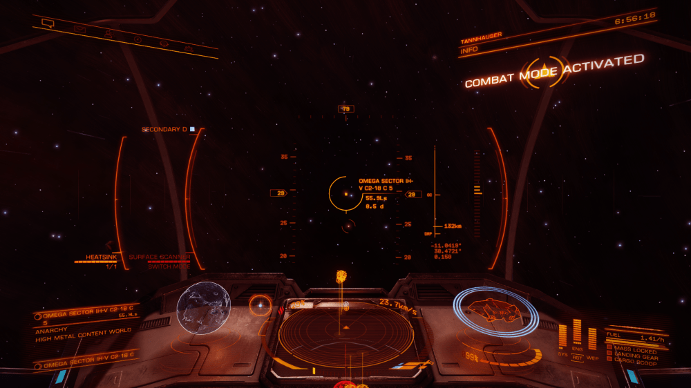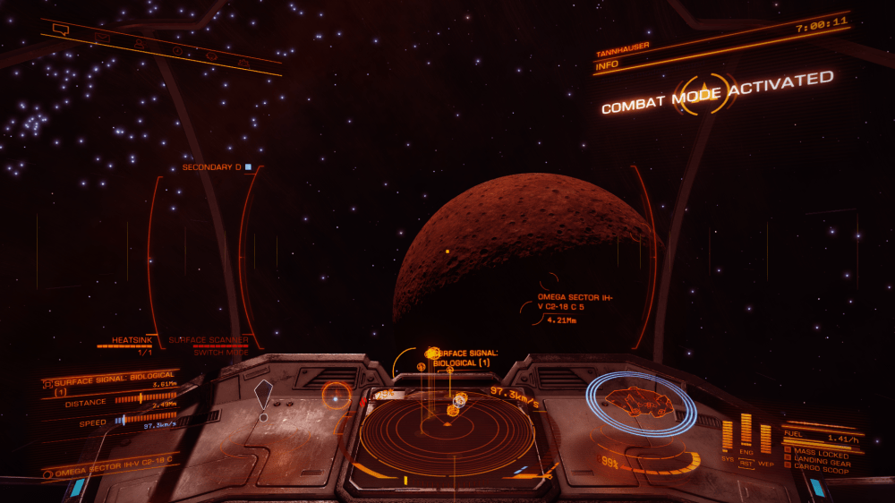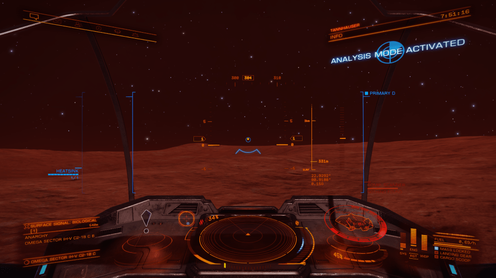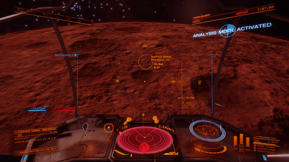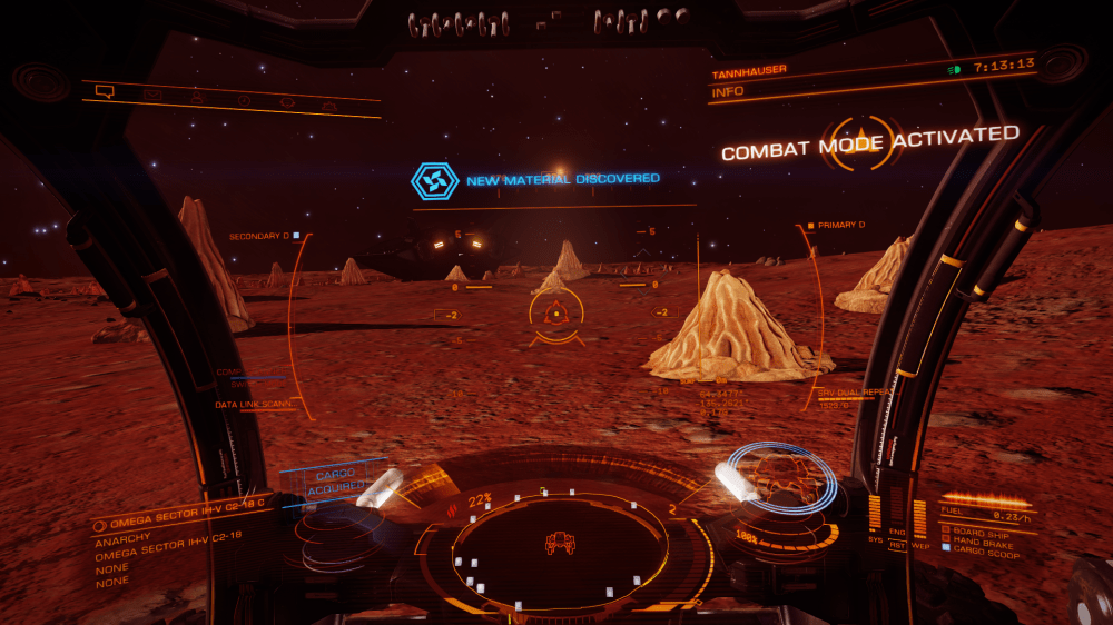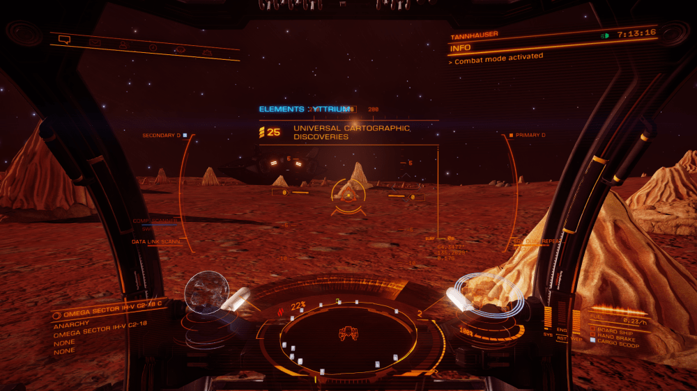 Lifted off planet 5 and headed on to planet 6… made a steeper than usual approach… big mistake, got caught in the gravitational well and slammed into the ground hard. stripped away all shields and did serious damage to modules and hull… Ouch… sat in the ship cursing for a bit before heading out in the SRV to inspect the damage