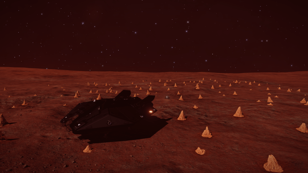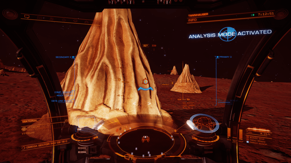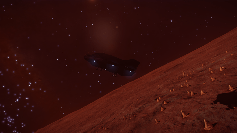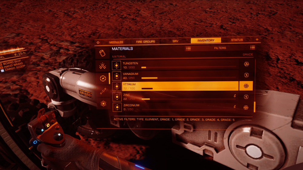 Moved on to planet 5 in the system a very oddly shaped red planet, flat with a few impact craters but nothing special. Landed at the Biological site, more Bark Mounds. Went for a bit of an explore in the SRV and found my first Yttrium and some more Niobium for jump boosting.