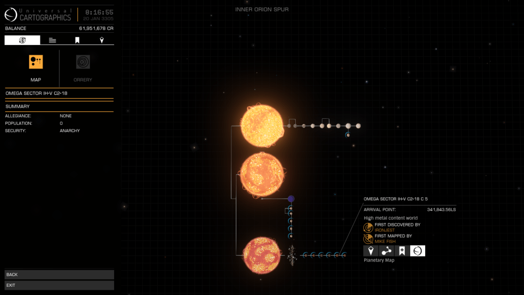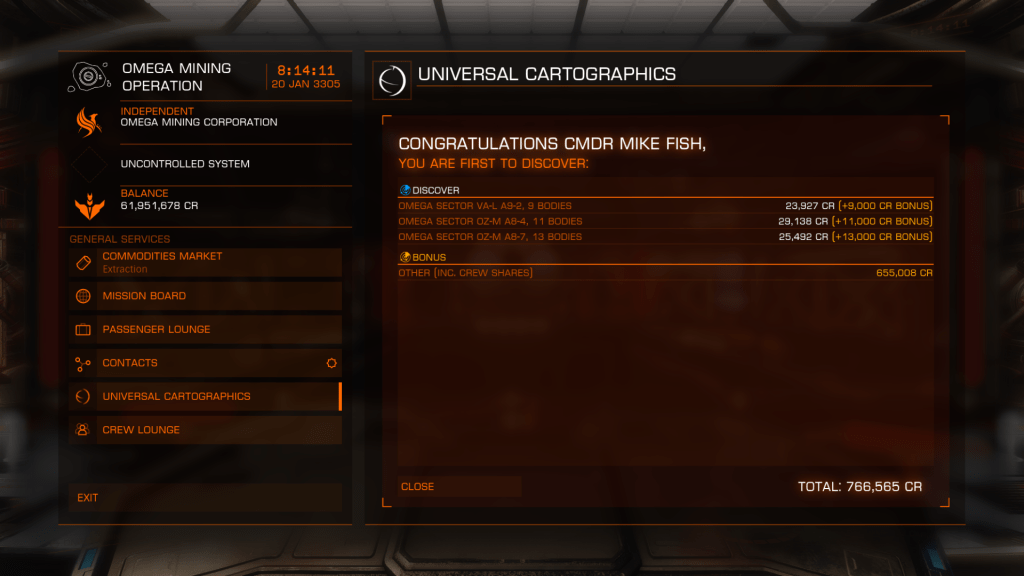 Made my first boosted jump 62ly back to Omega Mining Base to turn in exploration data and get ship patched up…