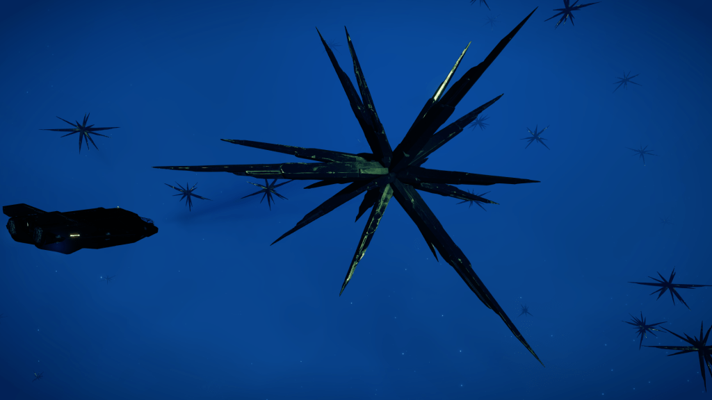 Continued on to the Stellar Phenomenon and discovered a new Lagrange type and a new type of Crystals. Was heading i\deeper into the cloud when Verity alerted me to a Priority Communication from Fleet Command, waypoint 3 has been announced and the fleet is mobilising, so back to Omega Mining base to stock up and plan the next leg of the journey.