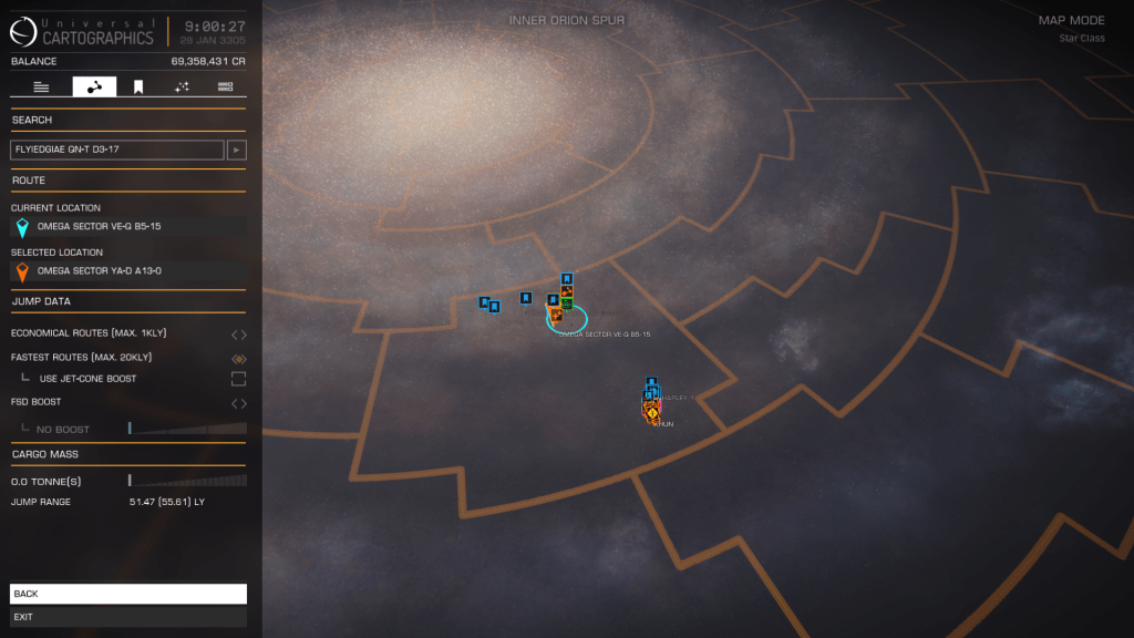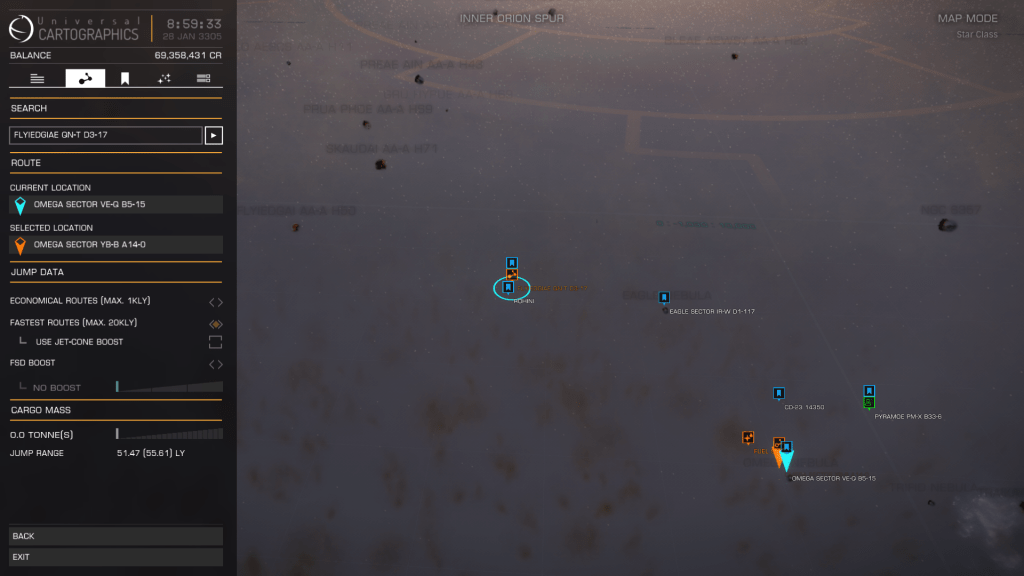 My intention is to jump 200 – 300 light years off the main route then head to the following points, hopefully finding undiscovered systems by not following the pack.