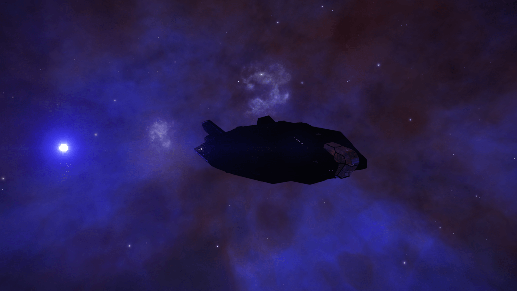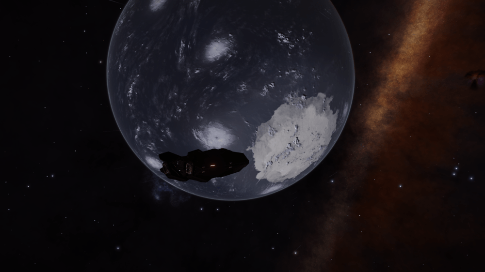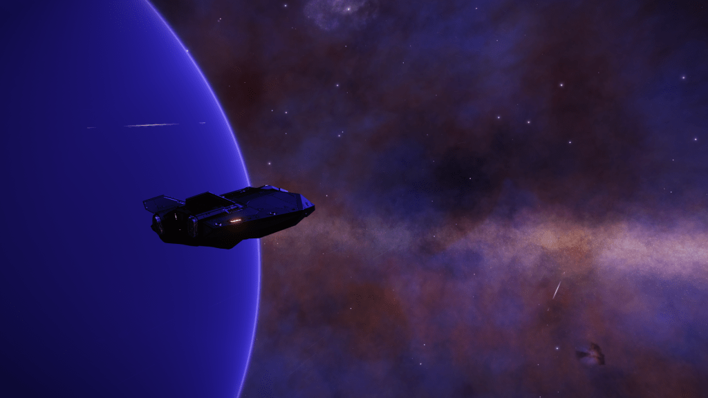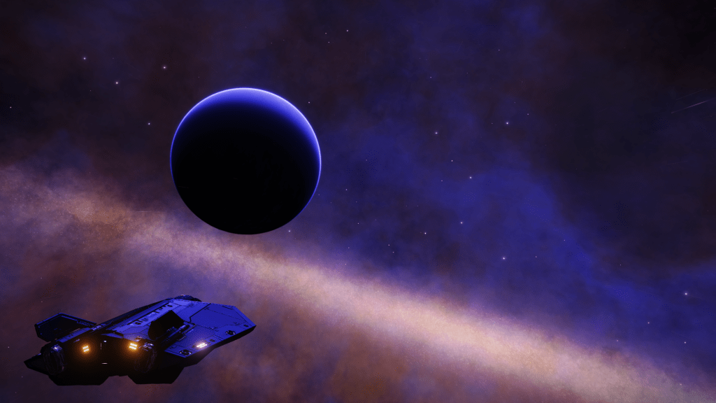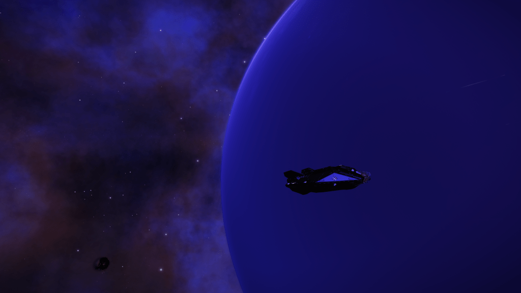 Arrived at CD-23 14350 Waypoint 2 on my journey. A spectacular blue Gas Giant surrounded by a purple blue Nebula.