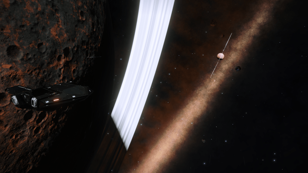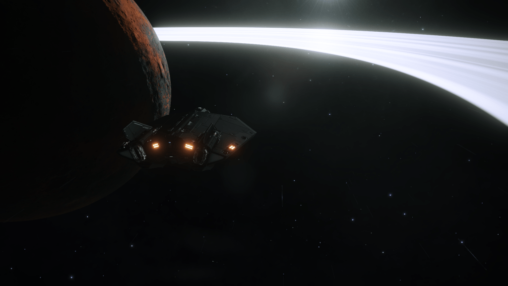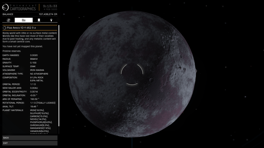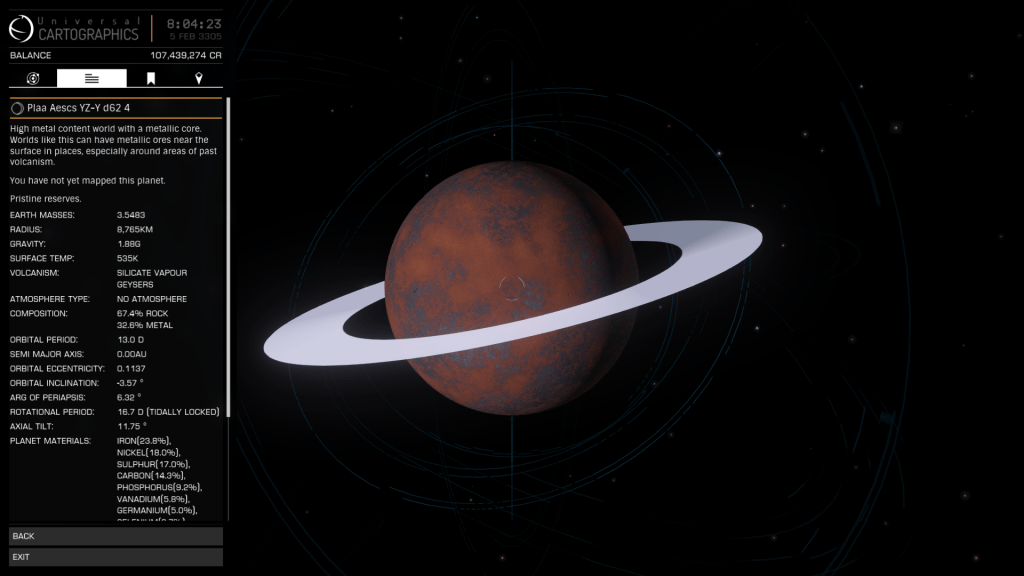 Preliminary scan shows active volcanism and Monazite and Painite Hotspots in the rings, pity I don’t have room for mining equipment.