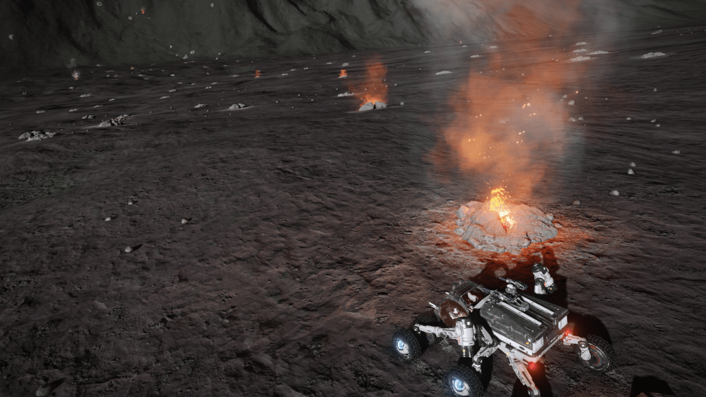Still exploring Plaa Aescs YZ-Y d62 this time a couple of Mountains to explore, the tallest was around 15km high and I managed to land close to the peak and cruise around in the SRV for a bit. Also found a fairly active magma field.