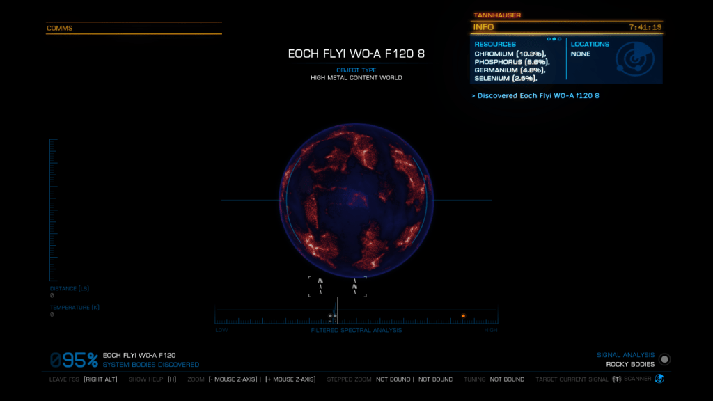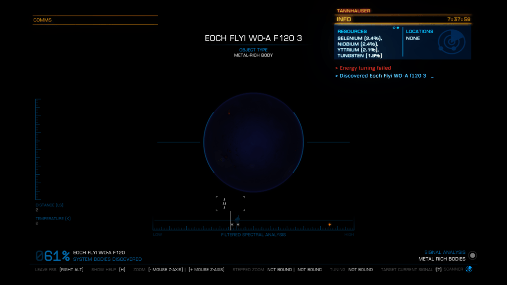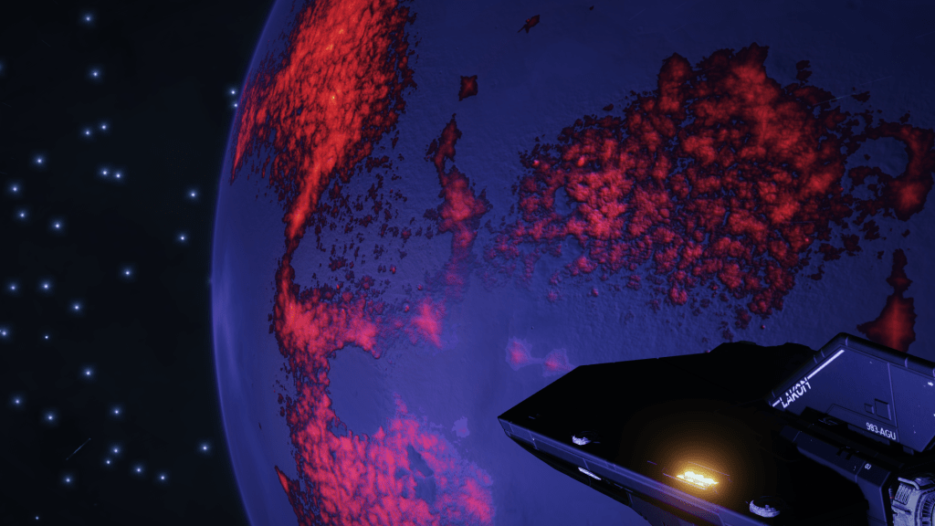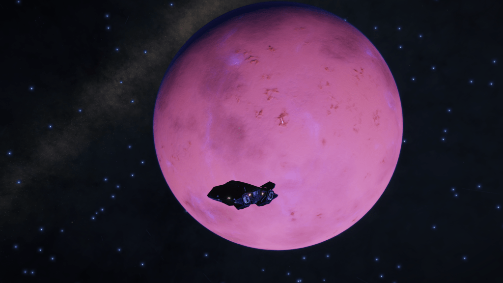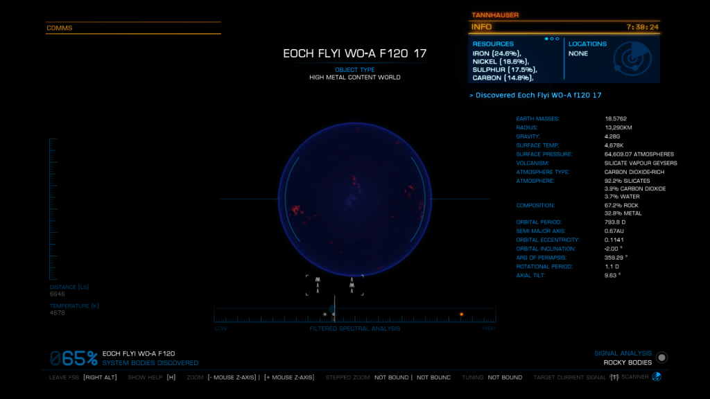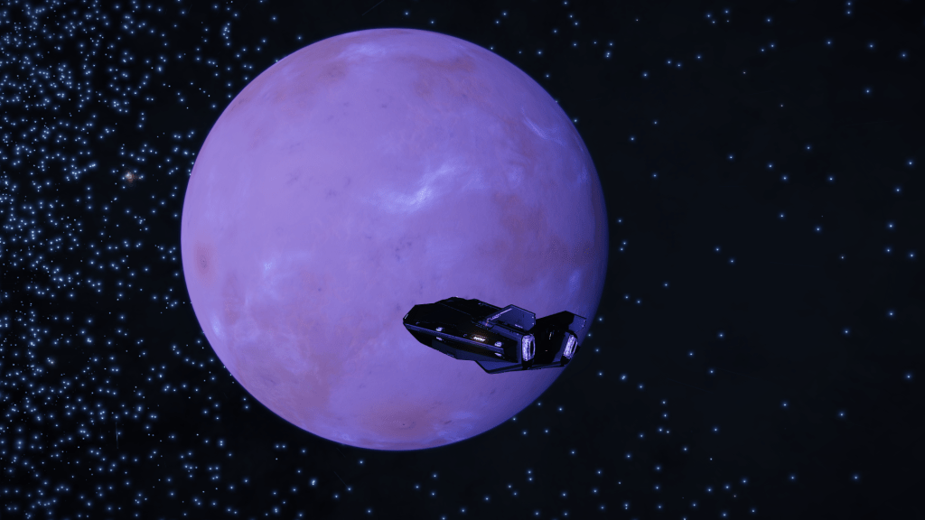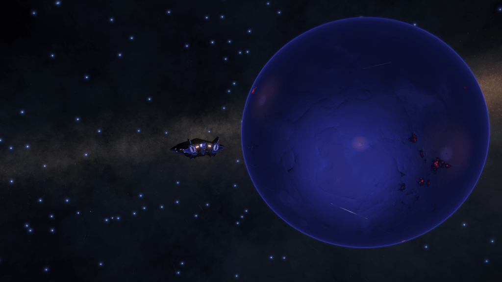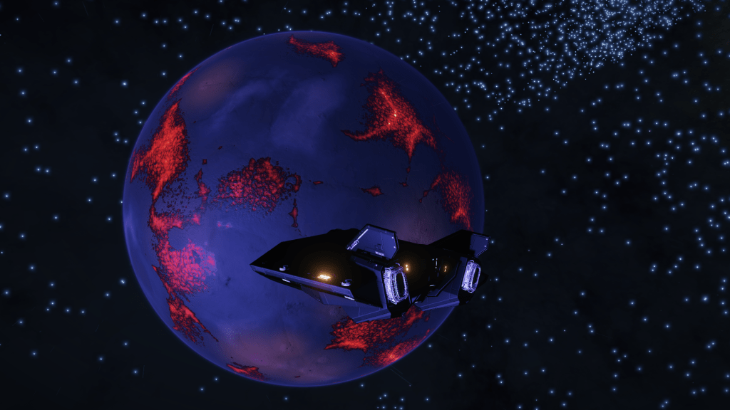 More exploring on the way to WP6, I have now entered the region of the Galaxy known as Odin’s Hold, and almost immediately I jump into a system of Giants… Eoch Flyi WO-A f120. Up until now the largest High Metal Content planet I have found was 12505 km radius, this system has no less than 4 planets larger than that at. 12816, 13290, 13645 and my new record largest HMC World Eoch Flyi WO-A f120 at 13706 km radius and 4.61G. Took the time to map them all for adding to the Codex and got some good drone pics too. At seven stars in the one system, it might be the most stars I have encountered in one place too.
